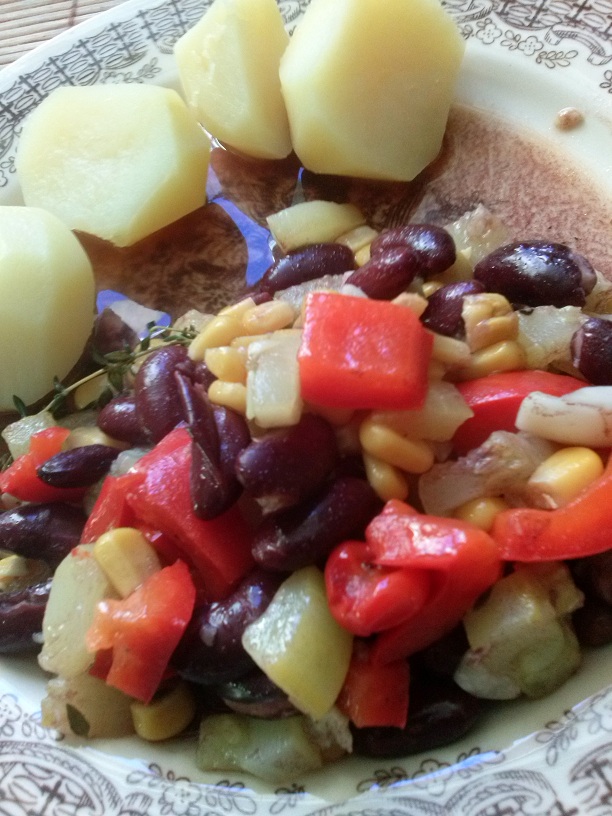 fasolką czerwoną i kukurydzą oraz świeżą papryką.